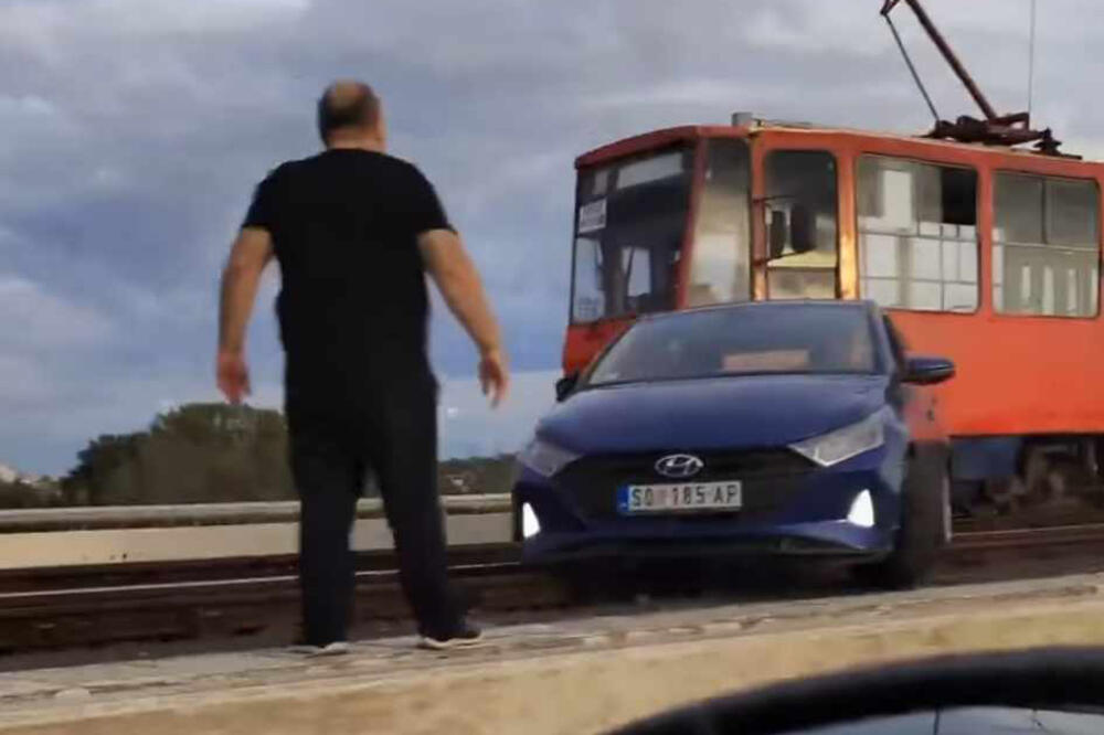 Automobil “hjundai” završio je na tramvajskim šinama. Zasad nije poznato kako je vozaču ovo pošlo za rukom jer se između leve trake i šina nalazi betonska bankina visoka čitav metar.