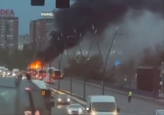 Na Brankovom mostu gori autobus javnog gradskog prevoza. Vatrena stihija se vidi na kilometar daleko, a crni dim kulja do nebesa.