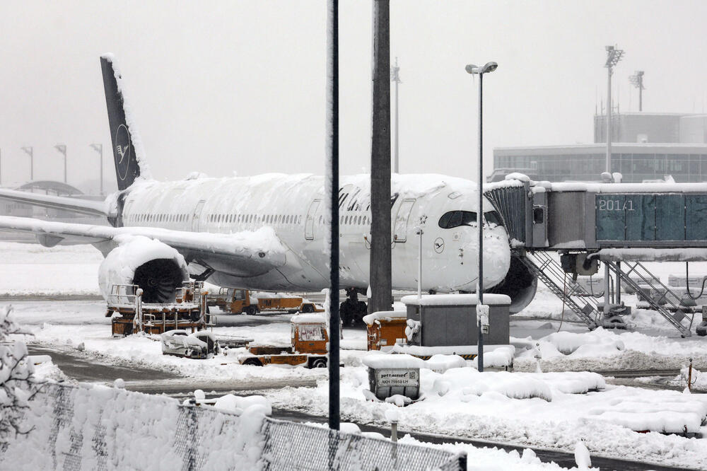 Obilne snežne padavine pogodile su južnu Nemačku u petak uveče i nastavile se jutros, izazvavši velike poremećaje na aerodromu u Minhenu, drugom najprometnijem čvorištu u zemlji. Otkazano je oko 320 od 760 letova zakazanih za subotu, javila je nemačka novinska agencija DPA. Posade su se trudile da zadrže najmanje jednu pistu u funkciji i bez snega.