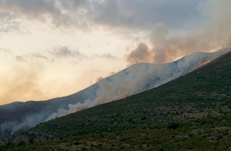 Požar ponovo uništava planinu Leotar nadomak Trebinja. Vatra je prekjuče buknula u selu Trebijovi, a juče je komplet severna strana ove planine zgarište.
