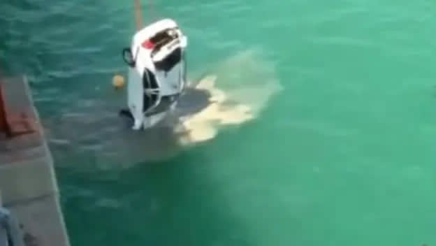Na snimku sigurnosne kamere koja je zabeležila nesreću vidi se kako se automobil u jednom trenutku kreće cik-cak, probija ogradu i pada sa mosta.