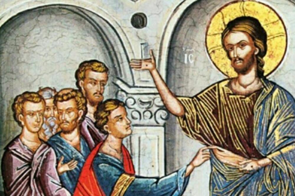 Dođe Isus kad behu vrata zatvorena, i stade među njima i reče: Mir vam. Potom reče Tomi: Pruži prst svoj amo i vidi ruke moje; i pruži ruku svoju i metni u rebra moja, i ne budi neveran nego veran. I odgovori Toma i reče Mu: Gospod moj i Bog moj. Psal. Isus mu reče: Pošto me vide verovao si; blago onima koji ne videše i verovaše.