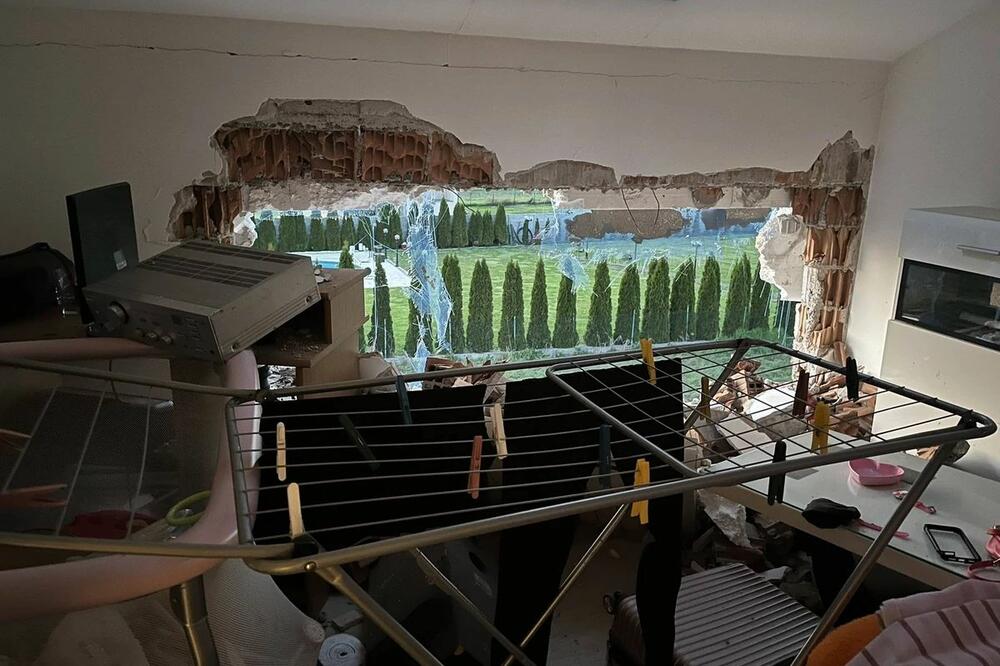 Kuća u kojoj živi J.J sa ćerkicom je oštećena tako što je na sve četiri strane, takozvanom viljuškom građevinske mašine probijena i praktično postala neadekvatna za život. Jedino što je ostalo čitavo jeste krov i hodnik.