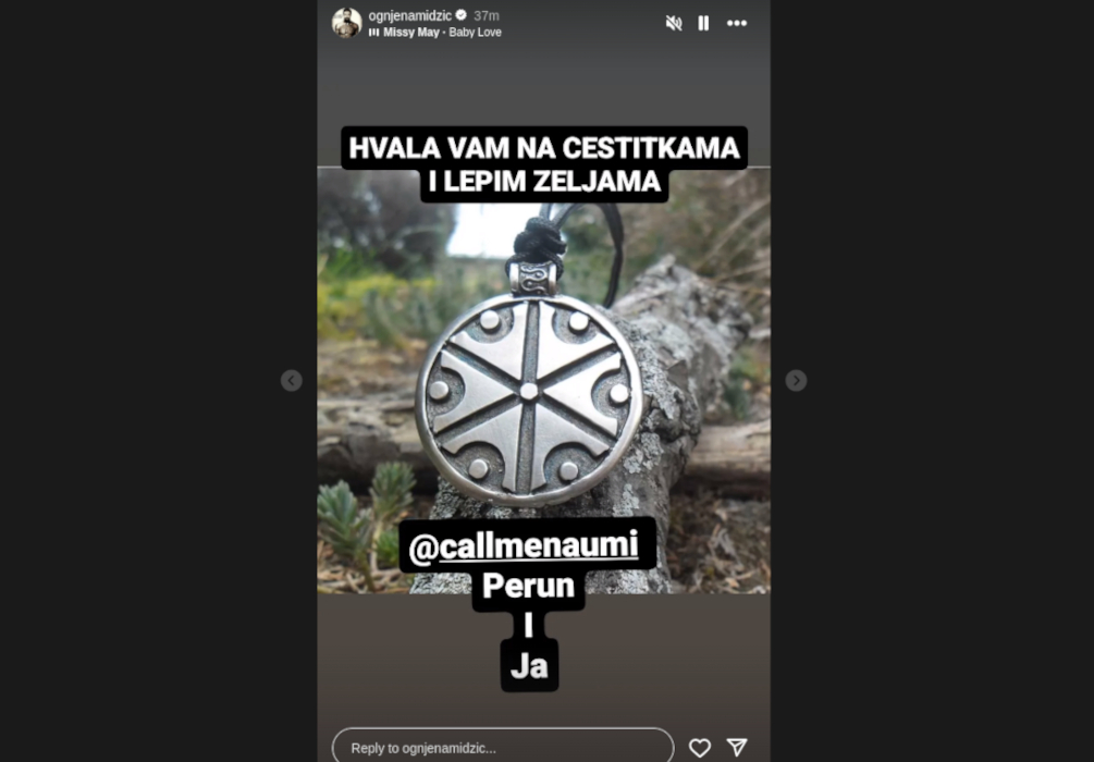 Amidžić, je podelio fotografiju koja prikazuje simbol Boga Peruna, a u potpisu fotografije označio je profil svoje supruge.
