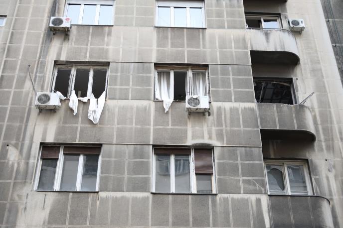Prizori u Kosovskoj ulici i juče su bili zastrašujući. Pocepani zavese visile su sa polomljenih prozora, a po ulici je bila rasuta srča od stakla. U samoj zgradi prizori su još gori!