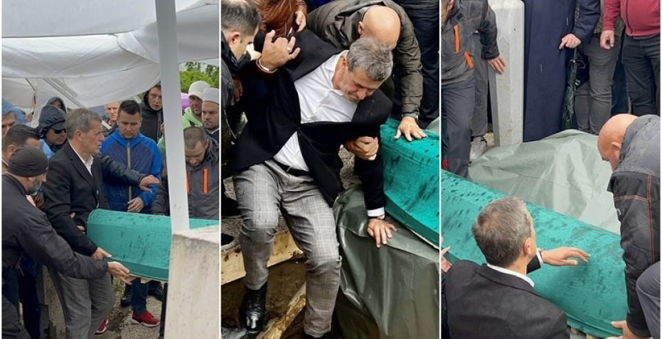 Posebno emotivan i potresan trenutak bio je kada se tabut preminulog spuštao u mezar. Kako islamski običaji nalažu, tijelo u mezar spuštaju najbliži članovi porodice (ako su to u mogućnosti), a iako je jedva koračao tokom dženaze, Enes je smogao snage i spustio tijelo sina u kabur.