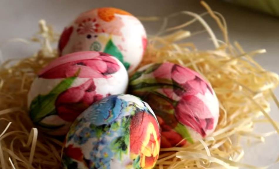 Kupite različite salvete, pa uklonite sve slojeve sem površinskog. Treba da vam ostane samo onaj sa šarom. Jaja skuvajte, pa sačekajte da se osuše. Isecite šaru sa salvete koju želite, pa stavite na jaje. Umočite četkicu u belnace i onda pređite preko salvete. Ponavljajte postupak sve dok ne popunite celo jaje.